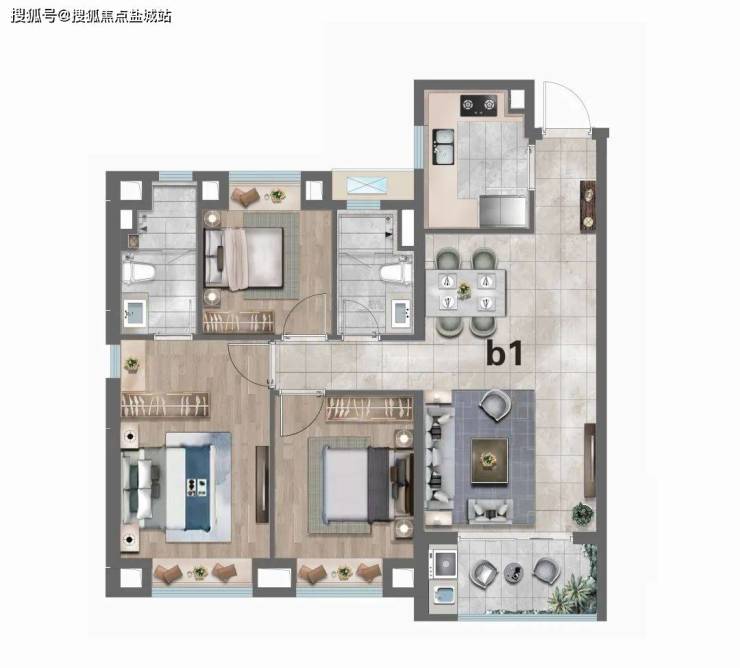 B1户型:建筑面积约104㎡3房2厅2卫