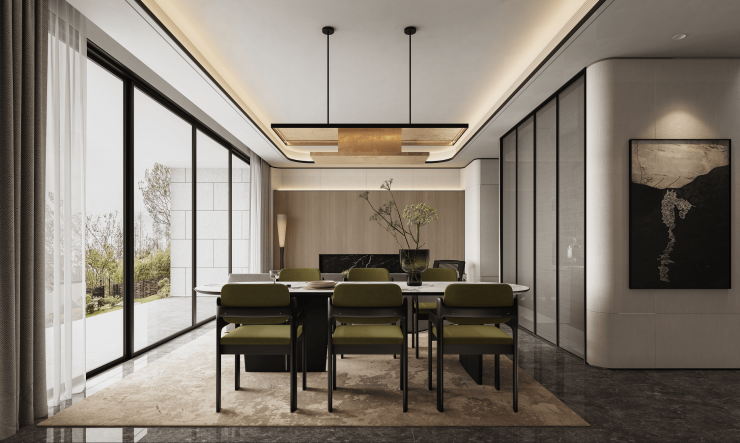 🛋边套户型餐客厅约7米大飘窗及落地玻璃设计,实现超大景观视界;