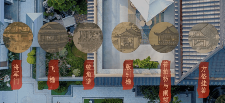 现代与传统的融合与补充,贯穿在整个设计当中。通过对宋韵建筑轻盈、精致、通透的特点用现代手法加以诠释,将宋式建筑元素构件针对性的做出原创转译设计,通过对“将军门、飞檐、重檐、绞角造、板引檐、普拍枋与阑额、方格挂䈋”等中国传统建筑元素的转译、复兴,为中式建筑美学带来新的建构与发展。