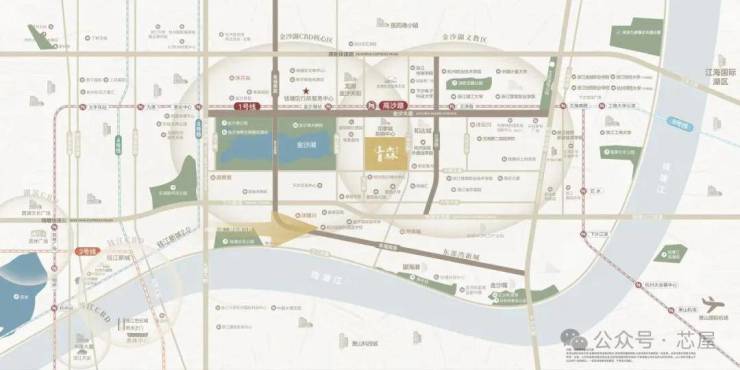 该区域有超百万方商业配套,1号线高沙路地铁口及钱塘、德胜快速路等交通覆盖,景苑小学、中学等多所学校(不做学区承诺),邵逸夫、浙江省中医院(下沙院区),近邻金沙湖公园。