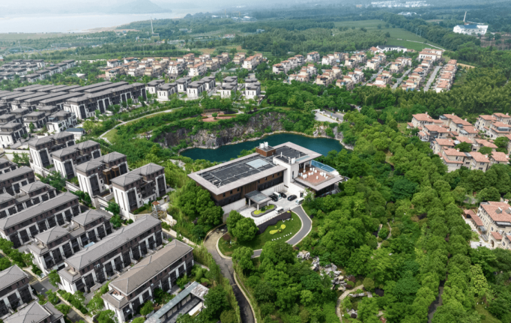 更不用说,长在度假区里的住宅这一属性,中交更用其非凡手笔,打造全叠墅产品,映月阁占地近12000㎡,其中社区景观超9000㎡,绿化率近70%,于山湖之上再造自然的手法,此等画面让人陶醉。