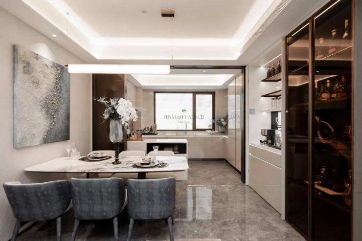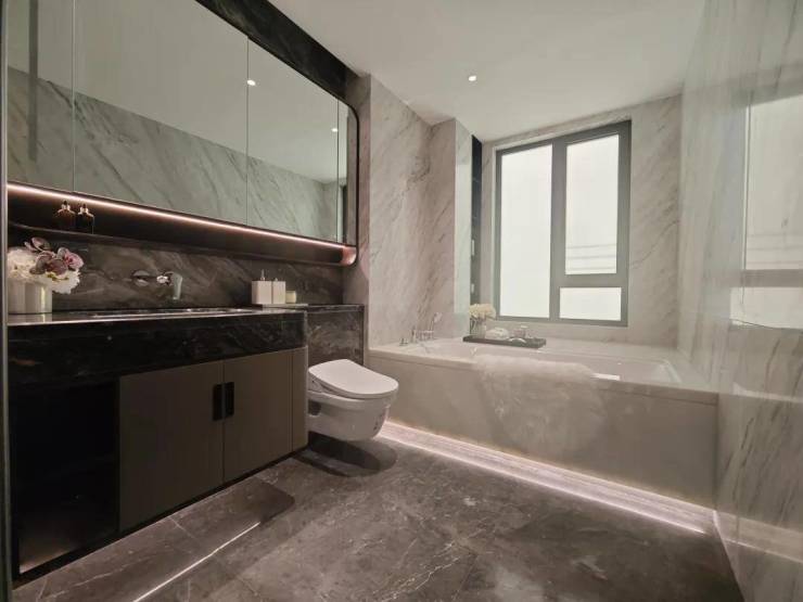 各次卧空间均预留了充足衣帽空间,相当人性化!类似悬浮式马桶、皮质包裹门把手、厨房墙面整块岩板等等,品质感和细节的打造已经超乎想象!这大概就是金茂府品牌的魅力!