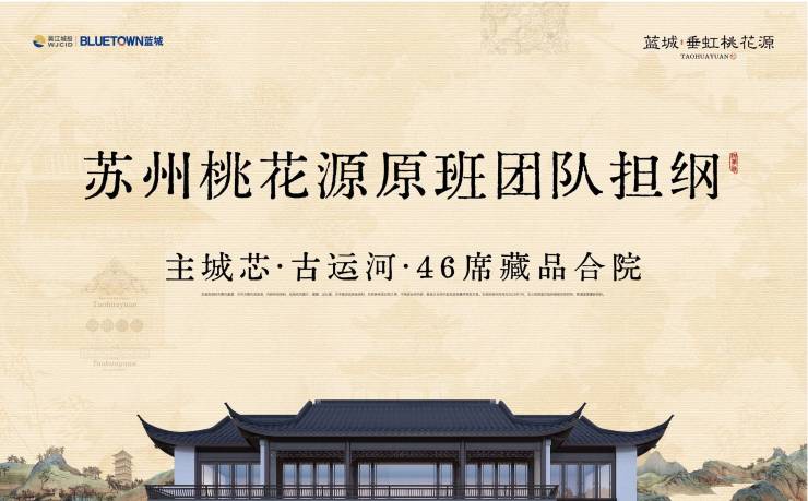 2023年,吴江城投力邀苏州桃花源总设计师王科先生携香山帮御用古建团队、苏桃核心景观区营造团队、杭州江南里景观总设计师、绿城中国十大金牌讲师、蓝城风景园林院院长丁自峰团队等苏州桃花源原班团队回归,于吴江文化积淀深厚之地——垂虹桥旁、运河畔,再造一座桃花源。