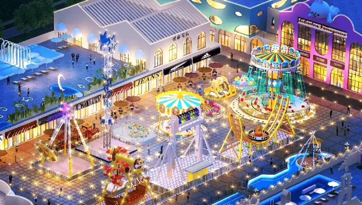 相当于一个小型的迪士尼和小型的万达相结合的主题乐园,不光有传统商业所包含的像麦当劳、星巴克、必胜客、豪客来、85℃、大渝火锅、东来顺等等大品牌外,还融合了近百种大中小全龄游乐设施和众多网红打卡旅游景点元素,是吃喝玩乐购一站式主题乐园。