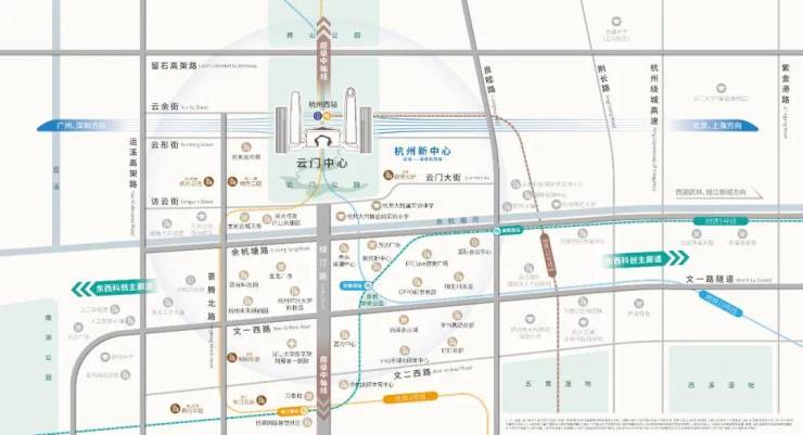 • 交通:杭州西站上盖综合体,地铁3、19、12(在建)号线,运溪高架,留石高架,文一西路快速路,绿汀路,良睦路等