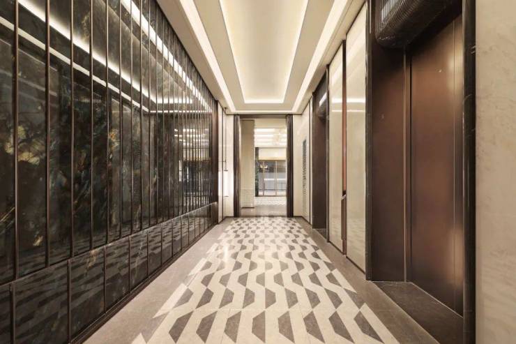 奢华从某种角度讲,需要扎实的投入。而在所有有关奢华的表述中,石材是不可或缺的载体。湾流800的首层大堂,地面和墙面,用到的石材就多达6种,不少还是进口而来。