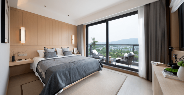 坐酌泠泠水,看煎瑟瑟尘,袅袅山湖间,静谧和诗意缓缓流淌。居住于此,隔绝城市的喧嚣和浮躁,每次呼吸都充满自然的气息,每寸空间都饱含无界自然之美。