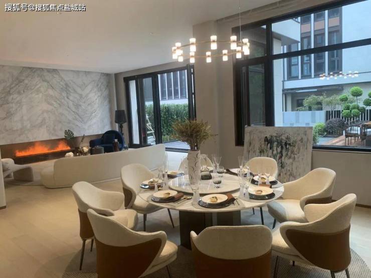 客厅7M超大面宽承接景观庭院,餐厅5M面宽尽享私宴奢华