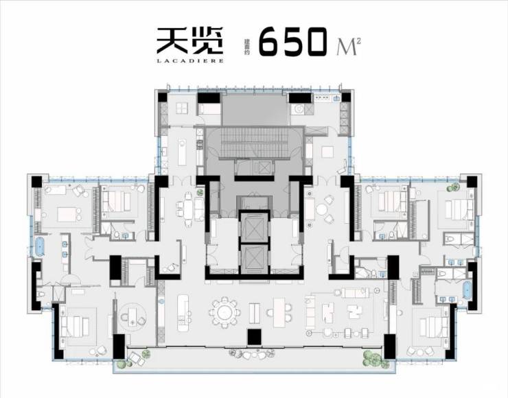 650m²,一层一户,三梯一户,尊享4个套房,8室6厅6卫,层高3.6米