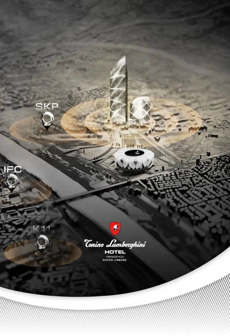 是杭州之门后,奥体落成的海拔第二高双塔(约250米),外号“小杭州之门”。瑰郦中心L-VILLA位于T2塔楼,12层的裙楼就是托尼洛·兰博基尼酒店。