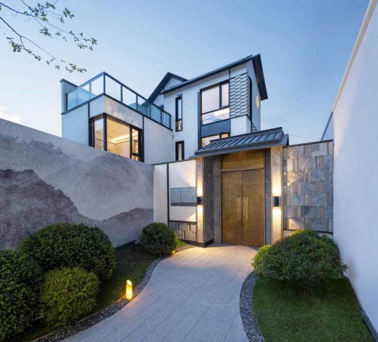 取古典山水意境,融合到设计的体块、比例、色调之间,通过现代工法将材质合自然院落意境融为一体。