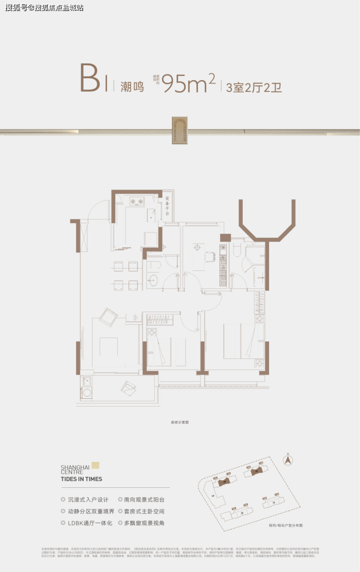 建面约95-97㎡3房2卫,2卫的设计保证了早晚高峰抢厕所的问题,并且主卧套房设计也保证了主人的私密空间。
