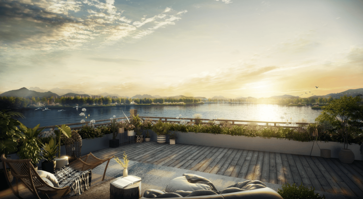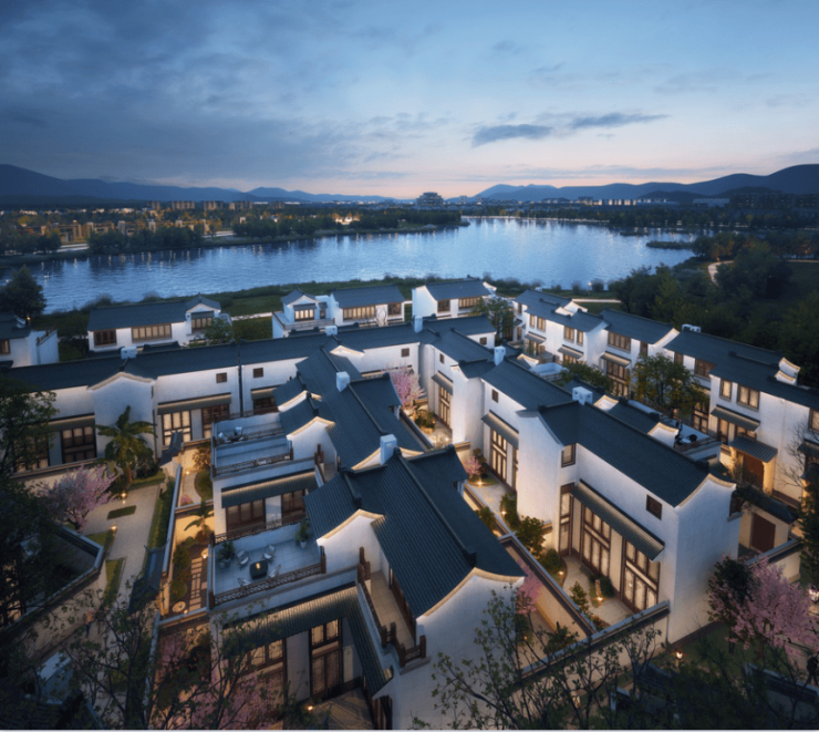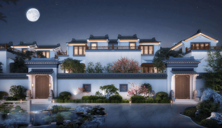 【艺境】以白墙黛瓦为核心元素,将“素、雅、淡、逸”色调糅合于建筑中