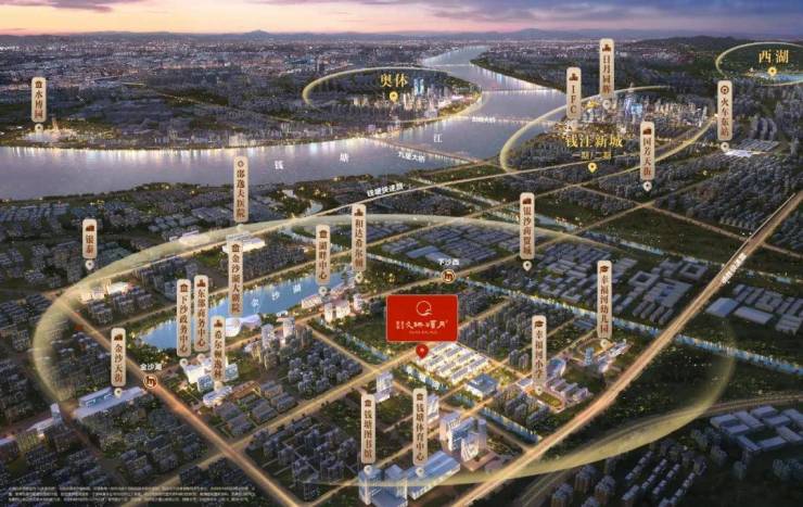 项目毗邻钱江新城,坐拥金沙大道、幸福南路以及德胜快速路等多条核心交通要道,构建起一个便捷高效的交通路网;