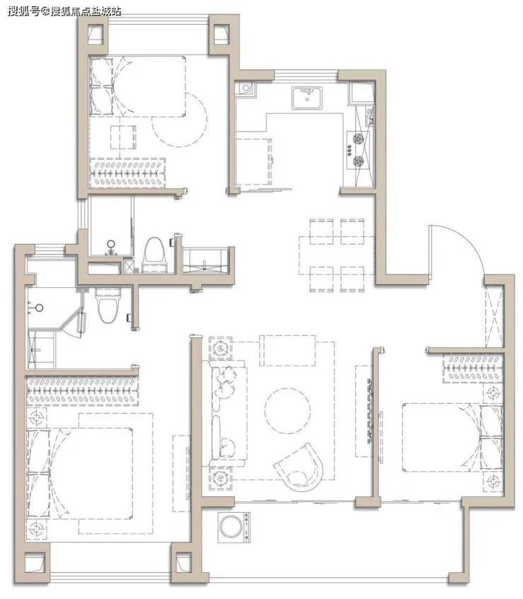 建面约100㎡是个典型的飞机户型,全明户型南北通透,独立玄关实用美观,几乎无过道浪费,延伸了空间的尺度。