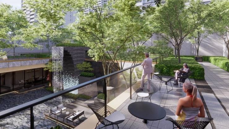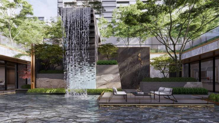 游园式归家的礼序观:融合水景、特色景墙、景观空间的园林设计,使南北轴线形成视觉上的融合,以归家的五境空间,打造心情美好转换的多重空间礼序,赋予主人归来时的尊贵与温度。