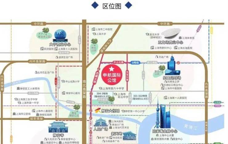 交通方面:项目距离8号线西藏北路站仅225米!一站虹口足球场,三站人民广场。且三站内可换成1,2,3,12号线几乎可达上海各处!自驾3公里可达人民广场,南京路等区域,靠近内环高架、南北高架!