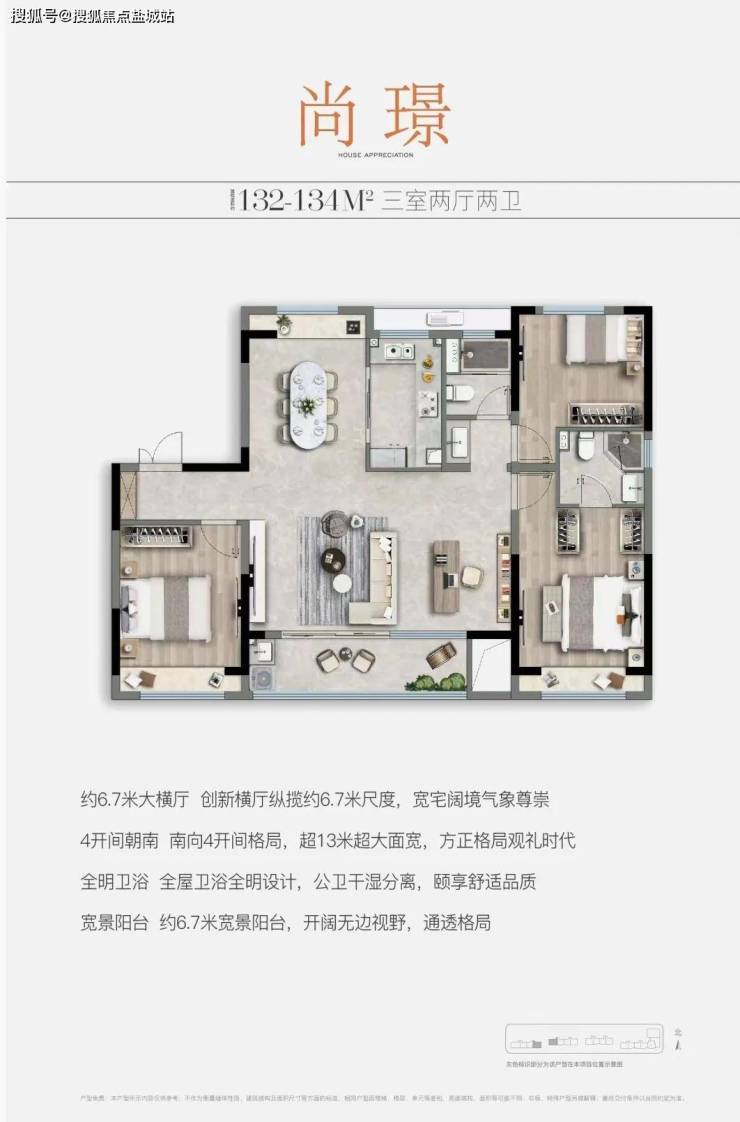 户型点评:两条天然河道从中建颐璟臺北侧和西侧蜿蜒流过,而140平这个户型最大的特点就是增加西侧开窗设计,整个房型三面采光,不但提升房间采光通风,更能完美拥有西侧北侧双河视野,一线河景尽收眼底;同时,约7.4米的大尺度横厅,除了拥有更大的采光面外,也可以根据需求自主隔离功能房空间。