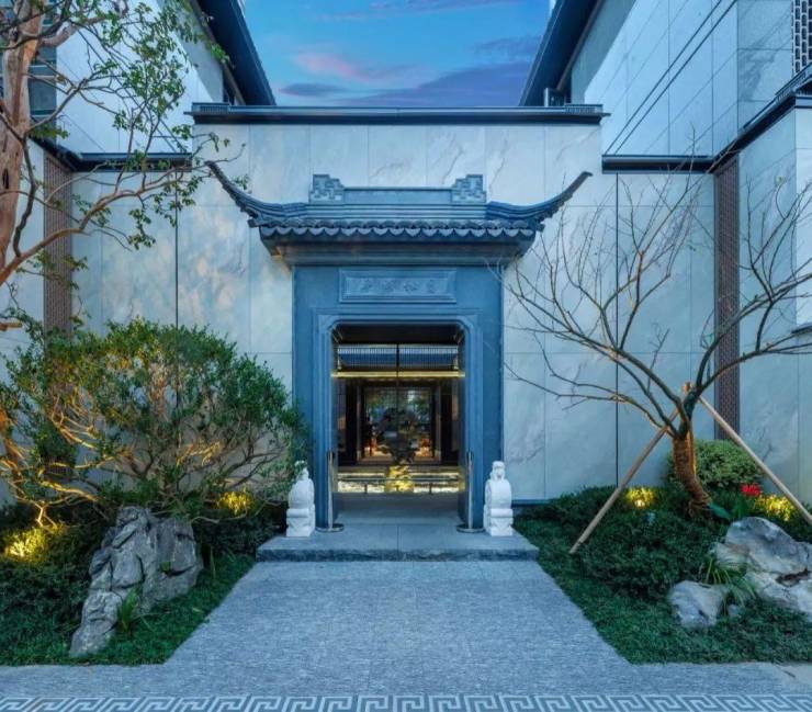 在呼应场地文脉的主旨下,采用新中式的建筑风貌。开局就是一座一进礼序逸山门,中心对称的布局,取意宋式风格。