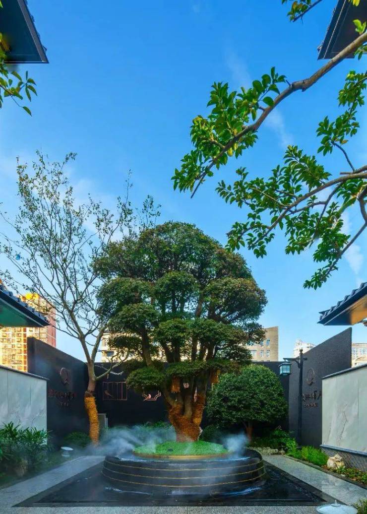 采用了四水归堂,水聚天心的空间设计理念,展现开合有序的空间变化,将光、风、雨、雪等自然元素融纳其中,当身处院内,与自然的对话也在这四方院内悄然发生,将中式韵味表达的淋漓尽致,给业主们带来富有仪式感的归家体验。