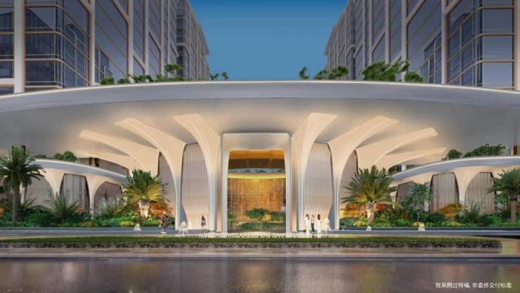 大门超百米,巧妙融入棕榈树阵的仪式感,结合镂空天井引入四时光影,打造地标级归家礼序。
