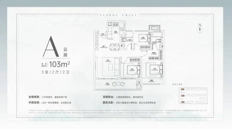 作为象屿在苏州的高端“云”系产品首作,江南云起在实景美学展示区的设计上,以江南水乡文化为底蕴,以“江南云起,姑苏雲居”为设计主题,巧妙构建“雲”和水的相互关系。