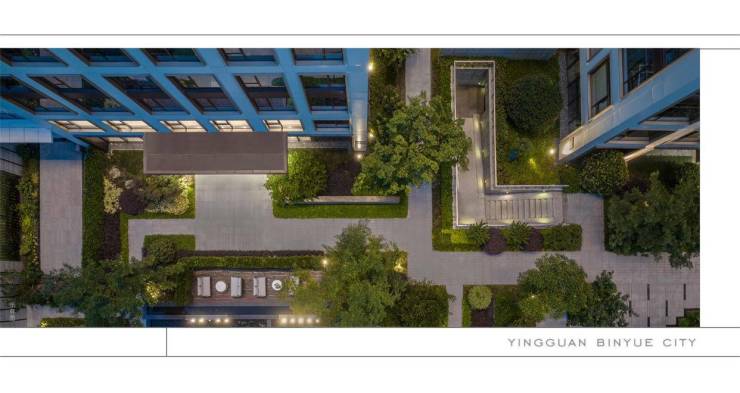 以《春江花月夜》为设计灵感,“三庭四院”园林景观,对景钱塘江的诗情画意。