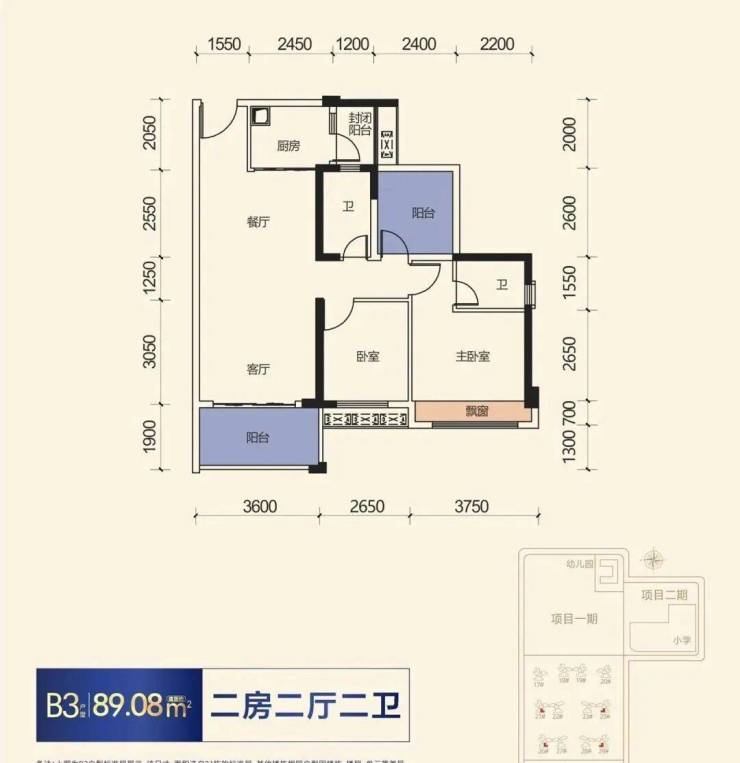 89㎡(3房二卫)朝南