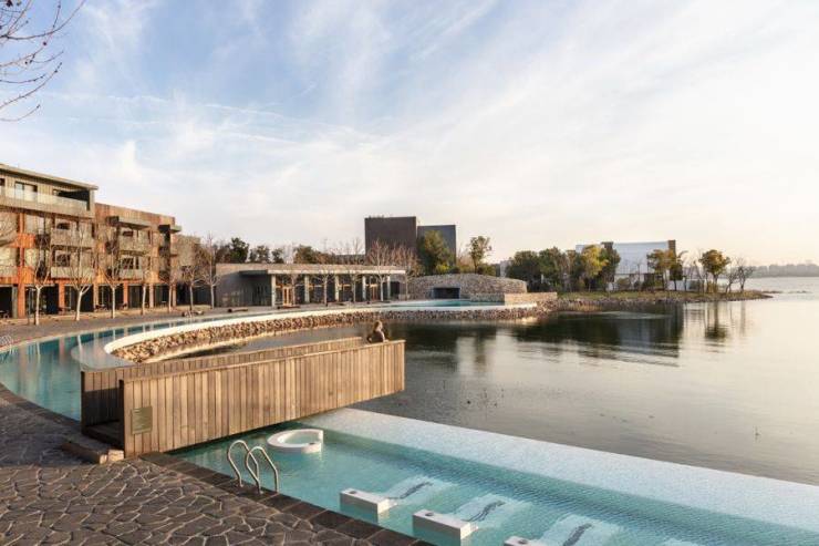 半岛总面积约24.39平方公里,其中内湖水域面积达7.8平方公里,让人仿佛置身于一片绿意盎然的世界。项目的总面积近20万方,总投资达35个亿,不仅是一个养生憩所,更是一个集东方智慧与西方科学于一体的正念生活体系。