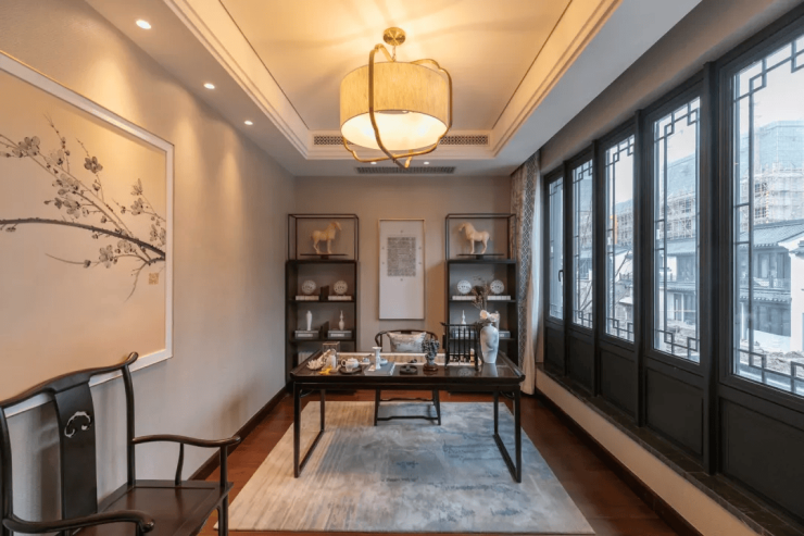 在最能体现中式建筑精髓的门斗、房梁、椽子等关键性部位,西湖院子采用的是非洲进口红木,搭配精致的花雕,尽显中式建筑的韵味。