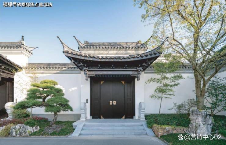 • 建筑即艺术藏品:外立面采用进口布拉格灰石材整块切割,搭配定制云纹瓦当与手工打磨望砖,将宋代美学与国际奢石工艺融合;园林取意《溪山行旅图》,叠山理水间,月洞门、林荫道、青石板路串联起「三步一景」的归家礼序;