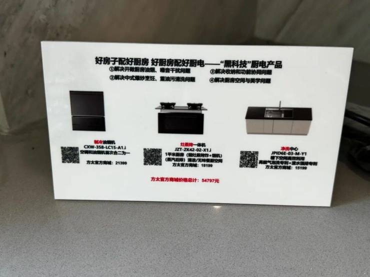 油烟机、灶台、蒸烤一体机、洗碗机全部采用方太空调系列,光是这一套设备官方标价就超过了5.4万。