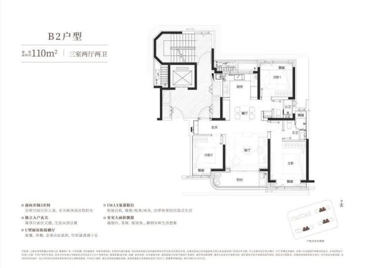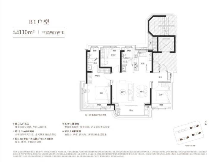 项目在110㎡面积段设置了B1、B2两个户型,为购房者提供了多一种选择!