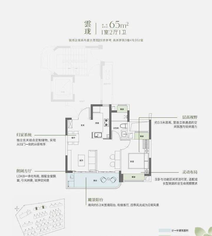 约9.8米南向面宽,配以超大尺度跑道式阳台,让室内外交融共生。