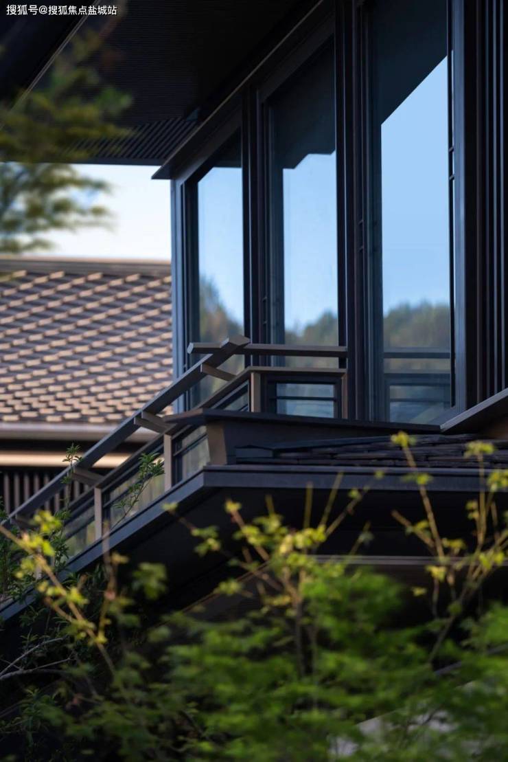 传统中式宅院往往有白墙易脏、采光不佳等不足,玺园·长流的外立面就用上了大面积玻璃桃木色铝板米白色石材质感更高级也更耐得住岁月磨洗