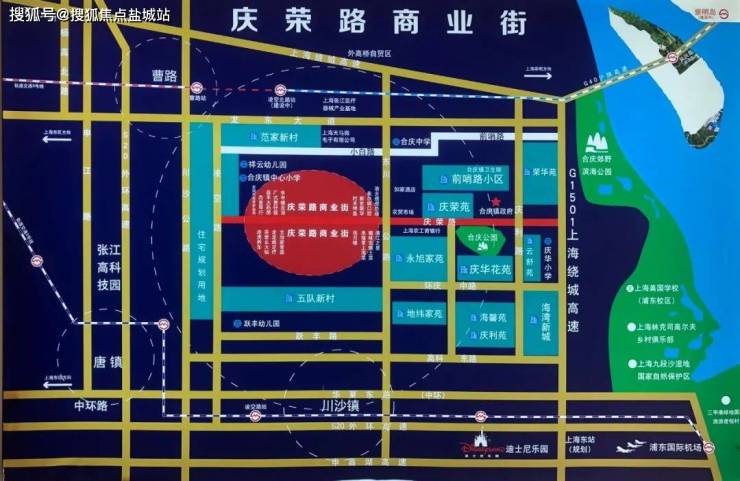 庆荣路商业街项目位于合庆镇的镇中心,南侧是浦东国际机场,未来还有上海东站,合庆镇的西侧则是张江高科技园区。依托浦东新区强大的产业能力,合庆镇其实已经定位成为了浦东新区的“后花园”,南边迪士尼,东边观光海岸线,未来的合庆镇,商业繁荣,旅游业兴旺。