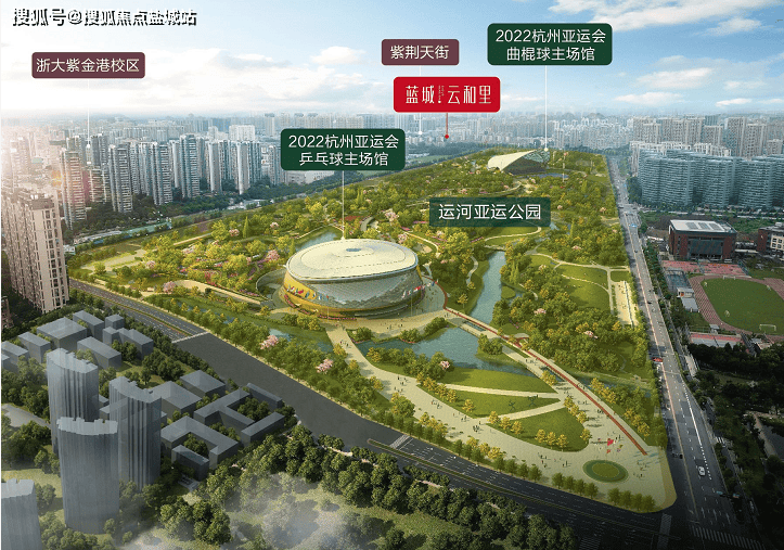 近邻约700亩的运河亚运公园(在建),该园投入使用后将成为集城市绿肺公园和文体综合新地标为一体的杭州最大综合性体育公园,也是2022年亚运会乒乓球和曲棍球赛事的主会场;未来将成为申花乃至全杭州的全民健身中心。