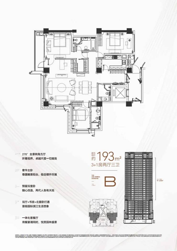 起步即133㎡阔景高层,约229-345㎡花园底墅,更有422-725㎡的天际大平层,以一切唯我的卓越尺度,提纯陆家嘴朋友圈,从一开始,即是一个圈层的入场券