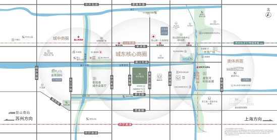 约800m(直线距离)连接苏州轨道交通11号线鱼池泾站,快速达成沪、苏、昆三城的城际切换;约1000m(直线距离)可达中环东线,实现城际交通衔接。沪宁高速等多通道接驳上海,畅行长三角,为出行按下快捷键。