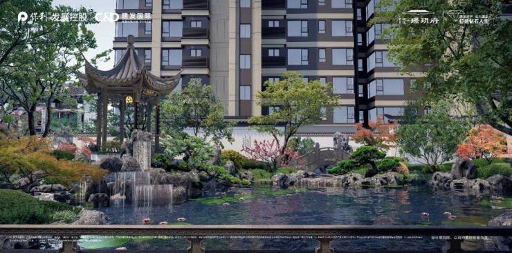 社区配置亭台楼阁、小桥流水、中式屏风戏台