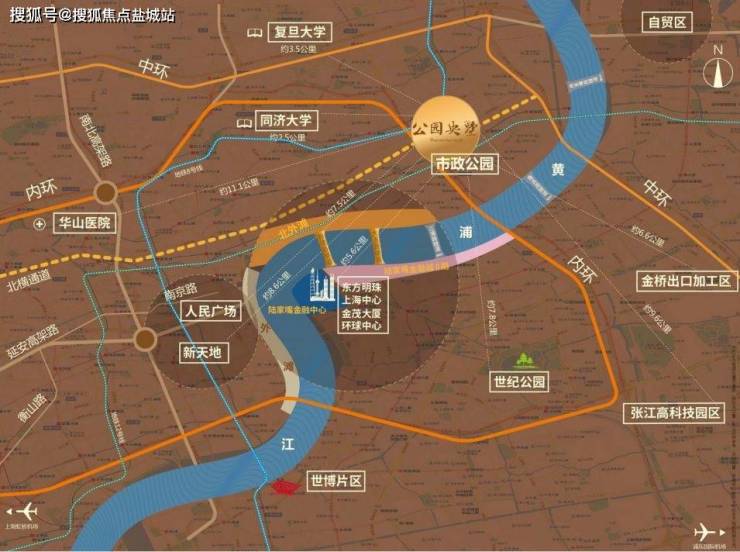 雄踞上海浦西内环旁,南靠北外滩,距离黄浦江岸约3.5公里15分钟车程直达陆家嘴商务中心