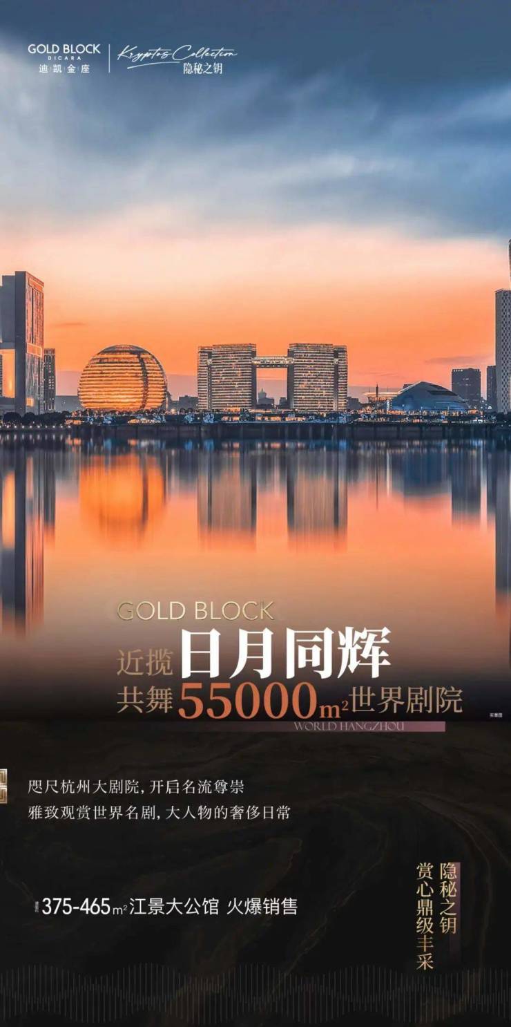 迪凯金座在钱江新城具有一定的辨识度,整幢建筑都是“金色”的,就在来福士中心对面,距离钱塘江仅约400米,高楼层可俯瞰钱塘江,同时,又可将杭州CBD的繁华尽收眼底。以及那些装标2万元/㎡、接近“手工高定”的约375-465㎡奢华世界。