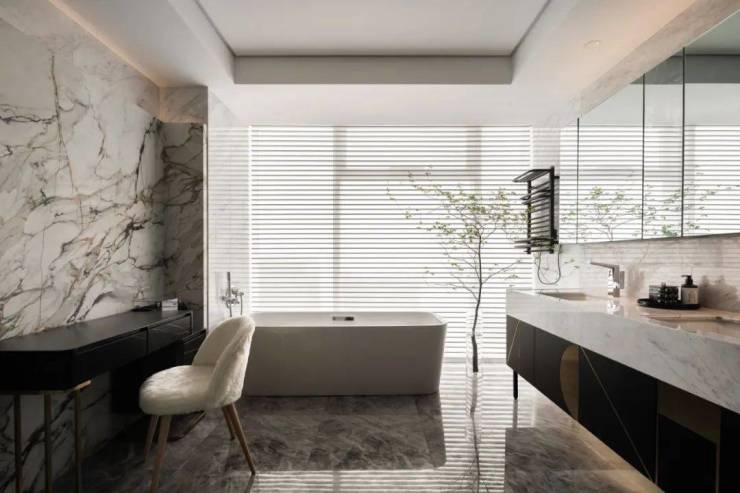 到了装标达20000元/㎡的“隐秘之钥”,辨识度更甚从前:公区地面、背景墙和岛台,满屏意大利雪花白和鱼肚灰石材,如云山缥缈。内室是鱼骨拼的进口橡木地板,木皮厚度约0.4毫米,有种让人“忍不住想席地而坐”的温暖感。“隐秘之钥”总是暗藏无尽心意。无论铜制透光屏风的十字门厅,还是270°采光的封闭式外挑阳台,一直都是迪凯金座独特的icon。