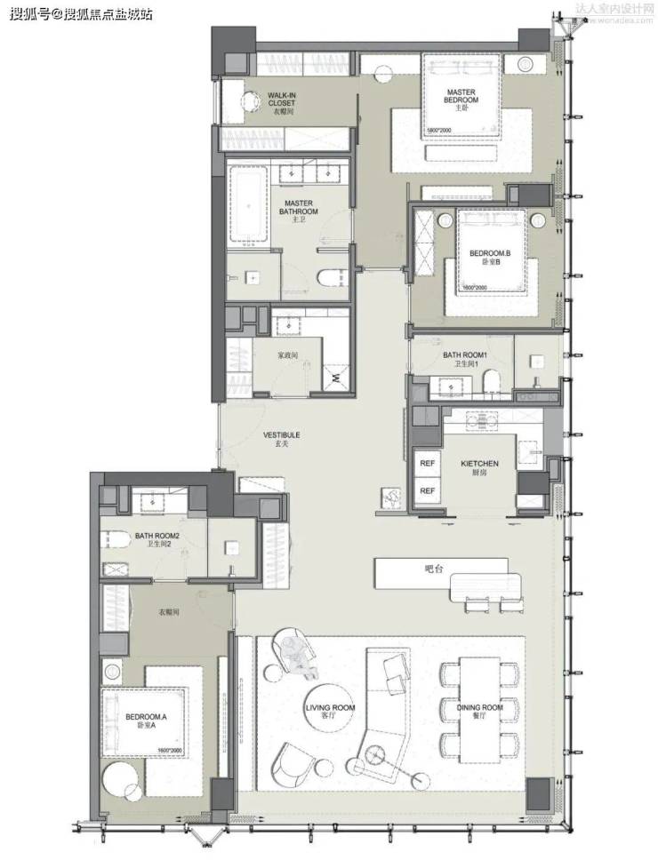 在华润杭州亚运村超高层公寓项目中,DIA主持了四个交付户型的室内设计,本文为大家重点展示其中F1户型精装样板间。