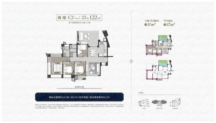 厦门首个瞰海第四代洋房住区,承袭建发房产第四代住宅前沿理念及最新产品风格,建发阅海产品规划建面约89-125㎡洋房/高层全四房产品,产品综合使用率达约87-108%,120平以上洋房/高层做四代住宅,户户带约14-17㎡空中花园,洋房户户带约7㎡入户花园,洋房2-4层更是增配约3-7㎡南向晒台,进一步实现空间拓容和尺度享受。