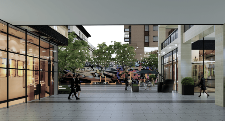 项目规划绿化广场、架空广场、休闲广场、内街剧场等多个社交空间,同时依托中央园林的全龄段社交板块与住宅楼下架空层的全龄主题场景的构建,打造家庭场景的延伸,共享邻里空间,构建邻里互助的“熟人社区”。