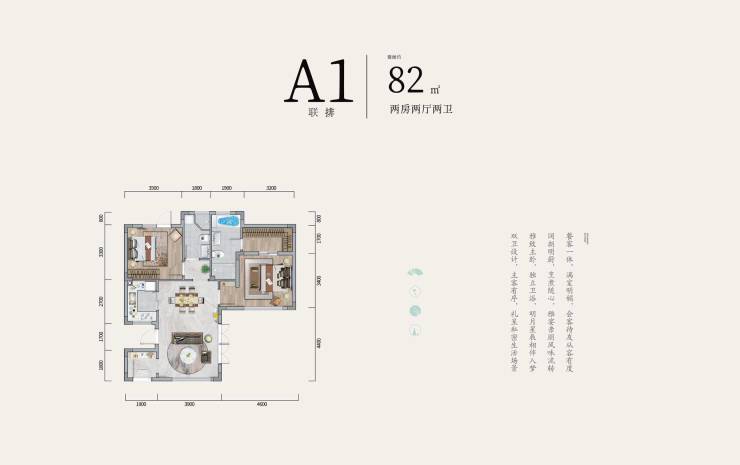 A1联排-82㎡-两房两厅两卫(在售)