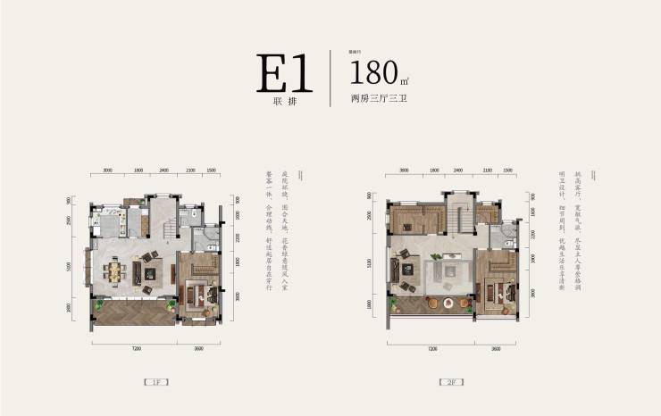 E1联排-180㎡两房两厅三卫(在售)