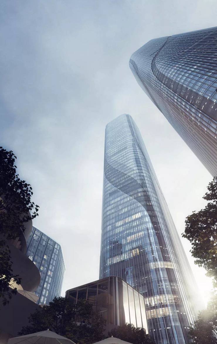 项目邀请国际知名大师团队EID ARCH首席建筑师姜平,通过双子超塔的建筑形象将智慧之门以抽象化的形式呈现出来。作为地块南侧城市轴线的终端, 双子塔的门户形象回应基地周边的城市空间关系,与整体的城市设计相协调。