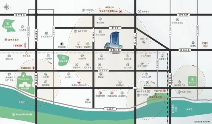 项目雄踞漳州胜利东路中轴路段,与九龙大道、漳华路、腾飞路等城市主干道交汇,形成两纵两横经济交通中心点,6km内漳州北高速站、约10km动车站,快速通达城市内外,为通勤时间做减法,商务链接做加法。